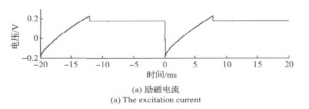 實(shí)驗(yàn)結(jié)果表明,高壓源向低壓源切換后,三端穩(wěn)壓器的工作特性致使的電流波動和低壓源供電情況下的恒流控制,會大幅延長勵磁電流的穩(wěn)態(tài)響應(yīng)時間。圖8所示勵磁電流約在17ms左右進(jìn)入穩(wěn)態(tài),圖9所示勵磁電流的穩(wěn)態(tài)響應(yīng)時間約為12ms。這表明,在采用三端穩(wěn)壓器搭建恒流控制電路的情況下,電流旁路電路能有效克服三端穩(wěn)壓器工作特性的影響,并能方便的實(shí)現(xiàn)電流超調(diào),加快勵磁電流的響應(yīng)速度。