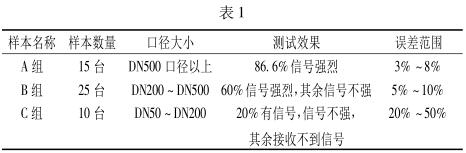通過大量的在線檢測試驗(yàn),可以看出所測管道管徑對超聲流量計(jì)測試效果有明顯影響。根據(jù)數(shù)據(jù)顯示,管徑越大,測試效果越好,示值誤差越小。隨著管徑的減小,超聲流量計(jì)所能檢測到的流速信號也隨著變?nèi)酰?dāng)口徑小于 DN50 時(shí),基本沒有信號或是產(chǎn)生巨大的干擾信號。