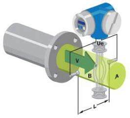 黃油流量計(jì)使用法拉*電磁感應(yīng)定律進(jìn)行流量測量。法拉*定律指出,每當(dāng)長度為“ l”的導(dǎo)體以垂直于磁場“B”的速度“v”運(yùn)動(dòng)時(shí),就會(huì)在相互垂直的方向上感應(yīng)出電動(dòng)勢“e”,其方向?yàn)?br /> e = Blv……(eq1)