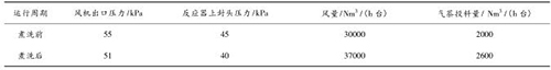 智能型渦街流量計煮洗吹掃后,裝置運行期間無燃爆事故,且裝置運行的風(fēng)量明顯提高,系統(tǒng)阻力明顯降低,投料量增加。現(xiàn)將煮洗前后的運行數(shù)據(jù)對比如下: