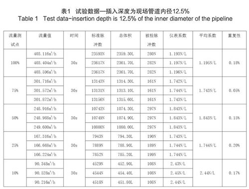 對(duì)以上的試驗(yàn)結(jié)果與相同規(guī)格、型號(hào)、量程的法蘭式流量計(jì)相對(duì)比,其準(zhǔn)確度無法相比。結(jié)論 :插入深度有問題,或流量計(jì)的采集信號(hào)的探頭結(jié)構(gòu)有問題。