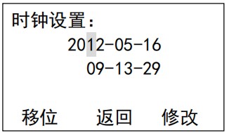 設(shè)置界面 13: 時(shí)鐘設(shè)置,校準(zhǔn)當(dāng)前運(yùn)行的日期和時(shí)間,此參數(shù)出廠(chǎng)時(shí)已校準(zhǔn),設(shè)置影響記錄的保存和查詢(xún),在運(yùn)行前務(wù)必確認(rèn)是正確的當(dāng)前日期,如錯(cuò)誤將造成記錄保存的混亂。