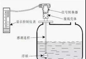 原理: 浮球液位計結構主要基于浮力和靜磁場原理設計生產的。帶有磁體的浮球(簡稱浮球)在被測介質中的位置受浮力作用影響:液位的變化導致磁性浮子位置的變化。浮球中的磁體和傳感器(磁簧開關)作用,使串連入電路的元件(如定值電阻)的數量發(fā)生變化,進而使儀表電路系統(tǒng)的電學量發(fā)生改變。也就是使磁性浮子位置的變化引起電學量的變化。通過檢測電學量的變化來反映容器內液位的情況。