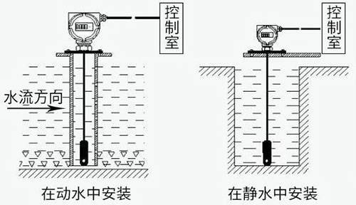 投入式靜壓液位計(靜壓式水位計)通常投入直徑大于水位計直徑的的PVC管、鋼管,管道固定在水中,不同高度打若干小孔,以便水通暢進入管內?;蛘咴诘撞考友b阻尼裝置,以過濾泥沙和消除動態(tài)壓力和波浪對測量的影響。