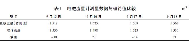生活污水流量計價格與V錐流量計都適用于環(huán)境較惡劣的場合。在測量精度上,V錐流量計要比生活污水流量計價格高,而且安裝更靈活,對上、下游直管段的要求很短,但V錐流量計要比生活污水流量計價格昂貴得多。生活污水流量計價格的測量精度雖不及V錐流量計,但在此應用中完全可以滿足要求,而且運行穩(wěn)定性和流量數據準確度也很好。表1是使用生活污水流量計價格對園區(qū)某個企業(yè)監(jiān)測點連續(xù)4天的累積流量監(jiān)測數據與理論流量的對比。
